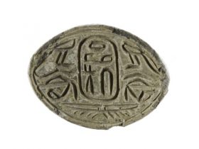 Si le damos la vuelta a la mascara del joven faraón, por su parte trasera, hay un texto mágico que se refiere a las diferentes partes del cuerpo y de la máscara con su conexión con los dioses. Este texto tenía la función de proteger su cuerpo y renovarle en el Más Allá, y corresponde al capítulo 151b del Libro de los muertos.